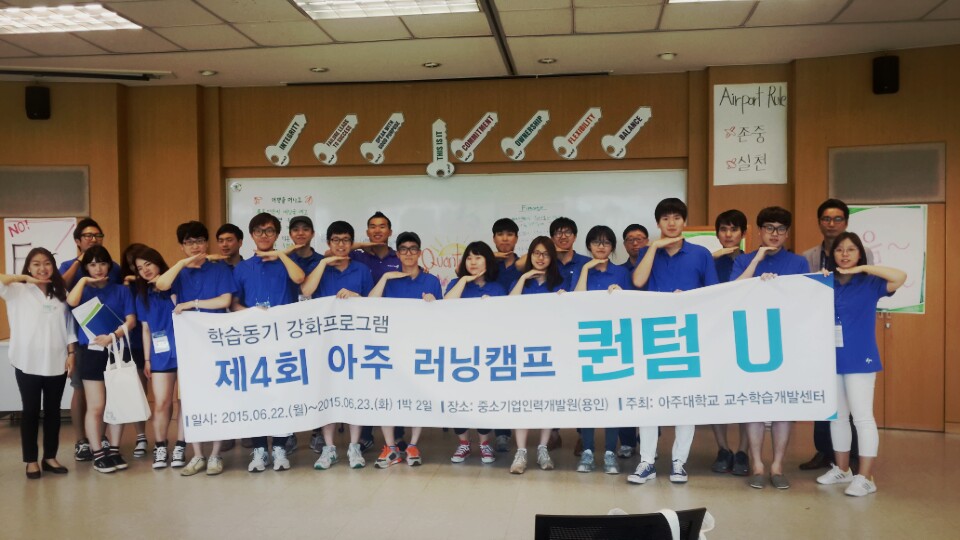 아주대학교 러닝캠프 퀀텀-U 강의 실시 페이지 정보 작성자 (주)퀀텀러닝코리아 작성일2015-06-23 조회741회 목록 본문 6월22일~23일 아주대학교 재학생을 위한 아주러닝캠프 퀀텀-U 과정을 실시하였습니다. 목록
